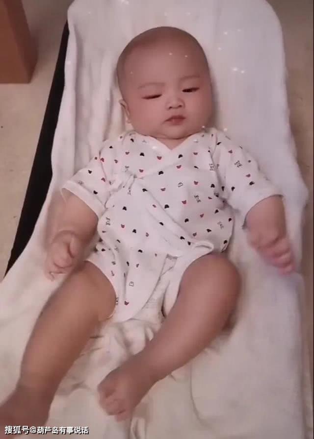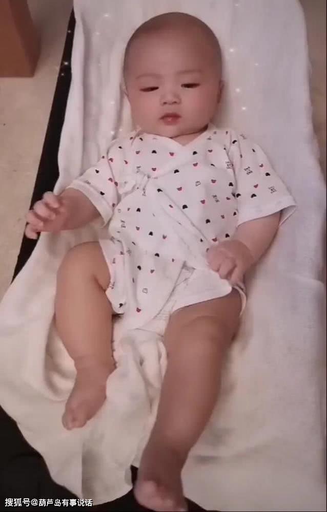 画面中,剃了光头的乐儿小宝贝变成小帅哥,五官清秀帅气,刚满一百天的它看起来又长大不少,四肢肉嘟嘟的好萌,一双大长腿尤为抢镜。
