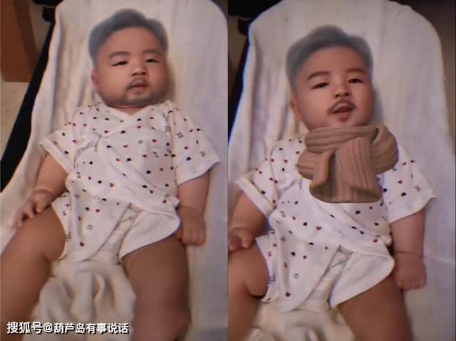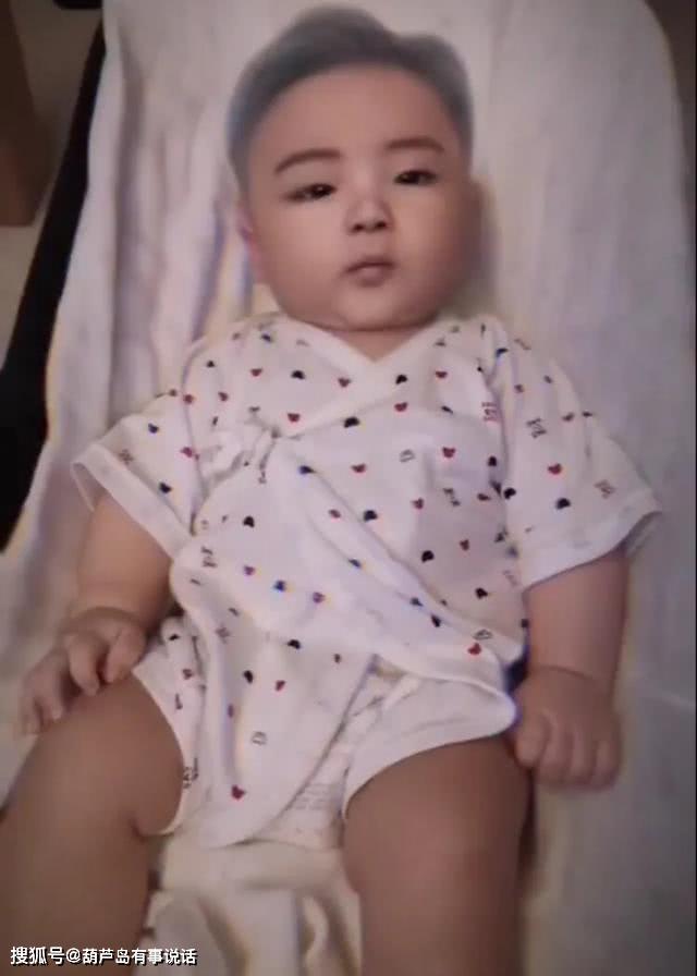 张晋还不停给儿子变换特效,造型百变又可爱。这个灰色头发的造型简直和爸爸一模一样,乍一看还以为是张晋呢,真的太像啦,简直是缩小版的张晋。