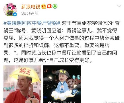 节目播出后,大家也终于知道,划错菜单的是林大厨而不是黄晓明。虽然被节目组调侃是“锅王”,但黄晓明在采访的时候却说:不觉得委屈,因为一个人努力做事的过程中势必会碰到很多的挫折和误解,这都不重要,重要的是结果。