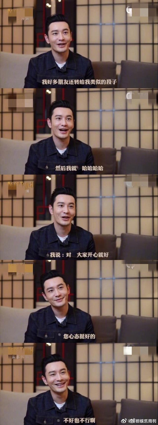 《中餐厅》节目中黄晓明被王俊凯杨紫调侃,节目外被观众吐槽,但每次面对媒体,黄晓明都是心态很好,觉得大家开心就好。