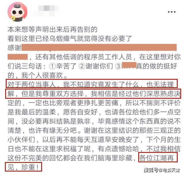 但是感情这事如人饮水冷暖自知,这毕竟是人家两个人的事情,连爽爸都很难插手,我们又有什么好说的呢?还是等两人的正正式回应,也希望能够好聚好散吧。