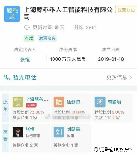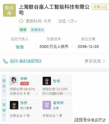 按照张恒的说法,两人开公司是为了完成郑爽的梦想,但是另一个说法却是郑爽在为张恒的梦想买单,至于究竟是谁在成就谁吃瓜群众也不了解。不过可以确定的是,两人公司的启动资金基本都是郑爽拿出来的,而张恒则是以最大股东的身份在公司担任高管。