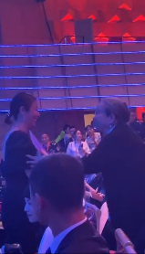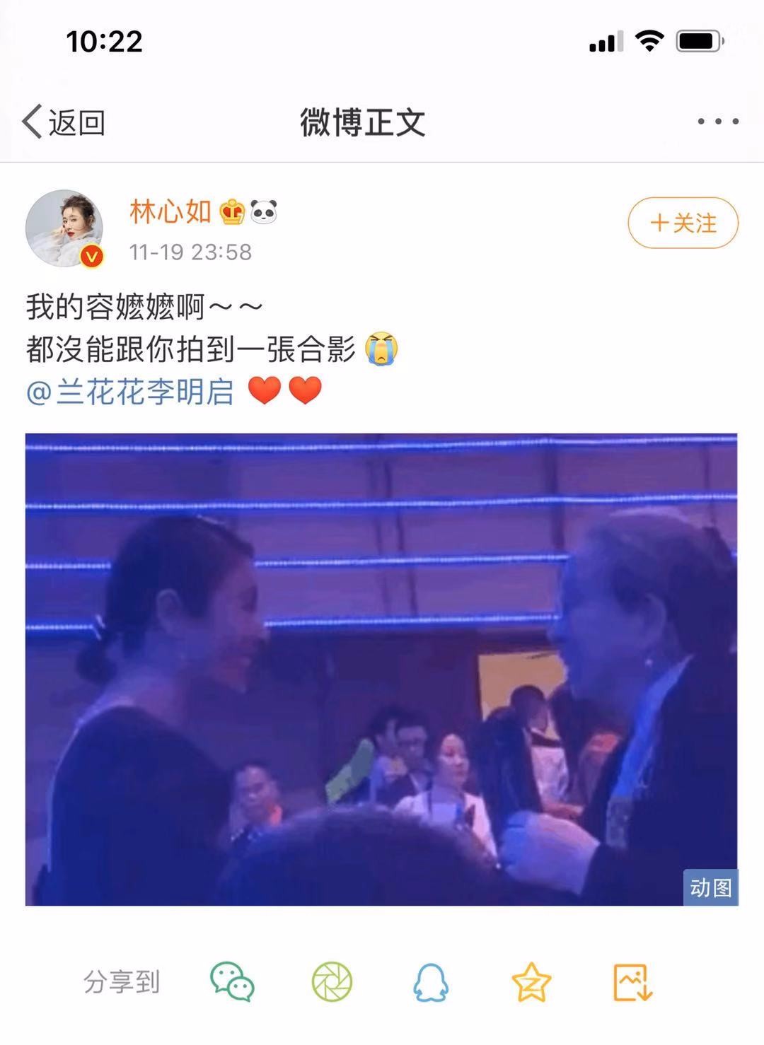在赶场途中,林心如看见在排队的李明启老师,主动停下跑到李明启老师面前,李明启老师看见林心如便亲切的拉起手,与林心如拥抱起来,李明启老师头发花白,依旧慈祥和善,因为赶场紧张林心如助理不断提醒,林心如与李明启老师的见面也就几秒钟,看出林心如赶场紧张李明启老师也是示意林心如去忙,很遗憾两人的见面同框也就紧紧几秒钟。连林心如也在平台感叹上称:没能拍到合影!