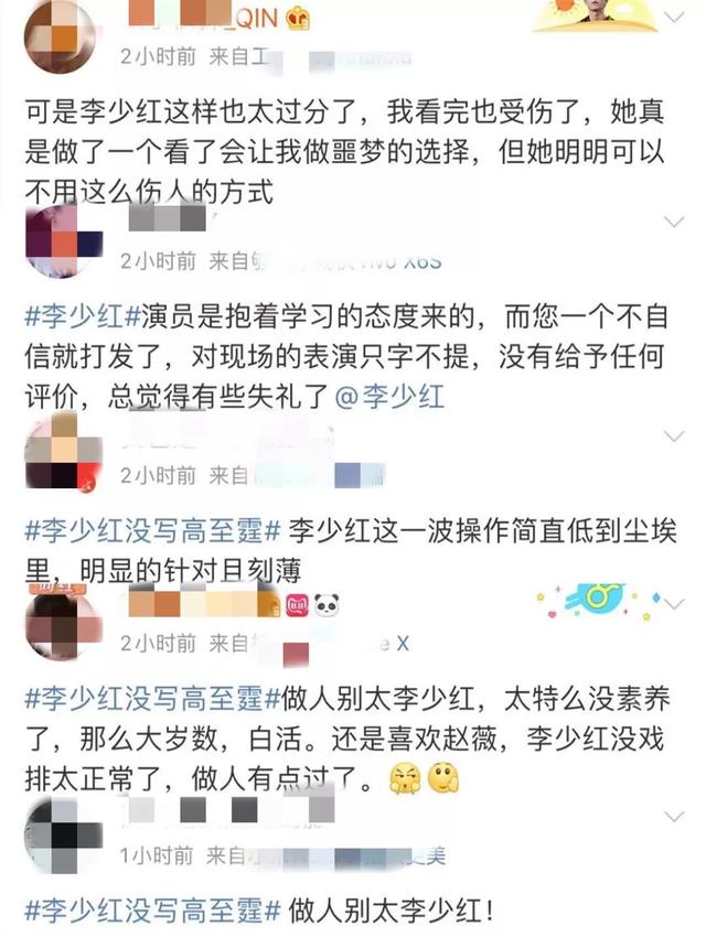 可唯独不写高至霆的名字,难免会让人难堪,情商显得有点低。小伙伴愤愤不平的同时,竟然流行起“做人别太李少红”的句子,也是让人哭笑不得了。