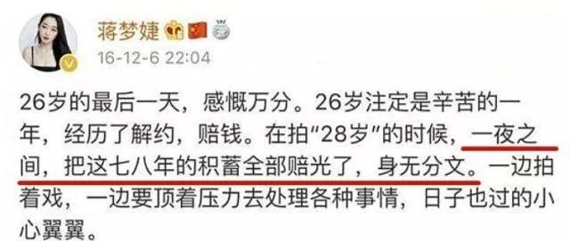 说起来,当时两人似乎闹得也很难看,从蒋梦婕的微博来看,为了解约,她付出了不小的代价,“一夜之间,把这七八年的积蓄全部赔光,身无分文”。在这之后,蒋梦婕的人气也是一路下滑。早前蒋梦婕也上了《演员请就位》,但后来莫名退赛了,甚至播出连镜头都剪掉了,至于原因也被网友质疑和李少红有关。不过,事情的真相究竟如何,还得等当事人回应,网友也只是猜测罢了。