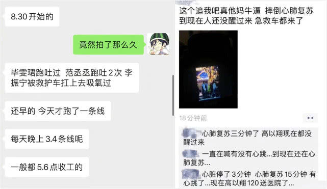 此外据了解,节目在晚上八点半左右开始录制,一直持续到后半夜,拍摄时间久而且劳动强度很大。出去高以翔突然昏外,其他艺人如毕雯珺跑吐过,范丞丞也跑吐了二次,李振宁被救护车抗上去吸过氧。现场人员表示,节目每天晚上跑三四条线,一般都在凌晨五六点钟收工。