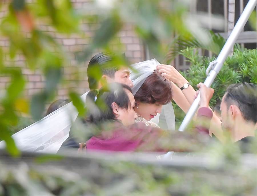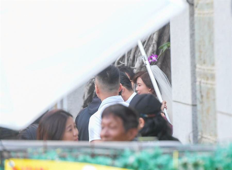 随后林志玲和黑泽良平在祭祖仪式之后进行换装,备受瞩目的婚纱照提前曝光。留着优雅盘发的林志玲头戴白纱,身穿一袭珍珠多颗网状高领的婚纱,十分典雅。