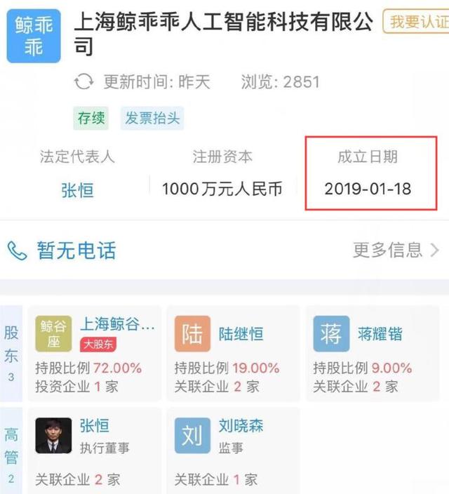 这家公司的注册时间是这个月的7号,郑爽和张恒在一起后开过两家公司,一家是他们俩共同投资的鲸谷座。