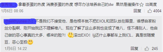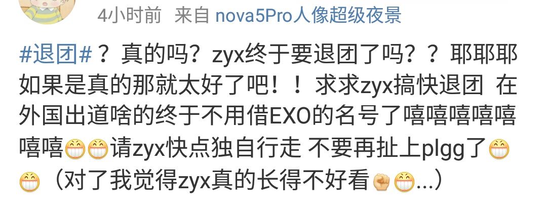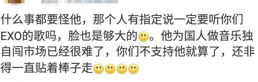 再加上其他一些被饭圈思维放大的事情,EXO粉丝圈便开始大规模无视张艺兴,几个月前粉圈做的组合七周年应援也没有带上张艺兴,这也算是正式撕破脸皮了。