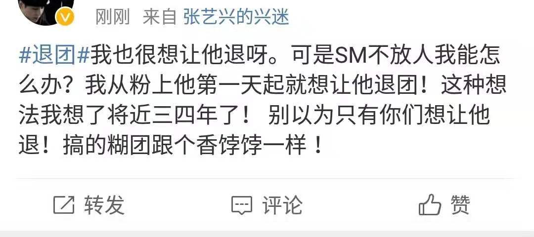 这一边EXO粉丝希望张艺兴快点退团独立行走,国外出道就不要再吸血EXO了。