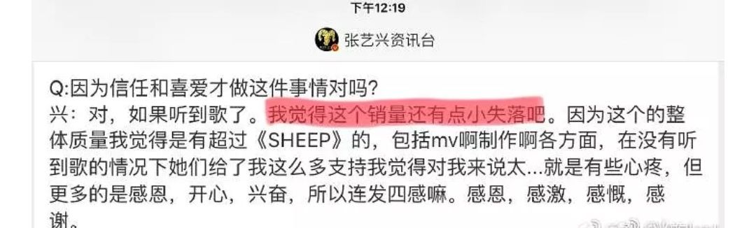 口口声声说不希望粉丝为自己花钱,却心口不一的在杂志上说自己专辑销量不够高有点失落。