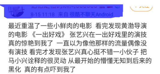 之后还出演了黄渤的电影《一出好戏》,还凭着这部口碑不错的电影得到了不少好评。