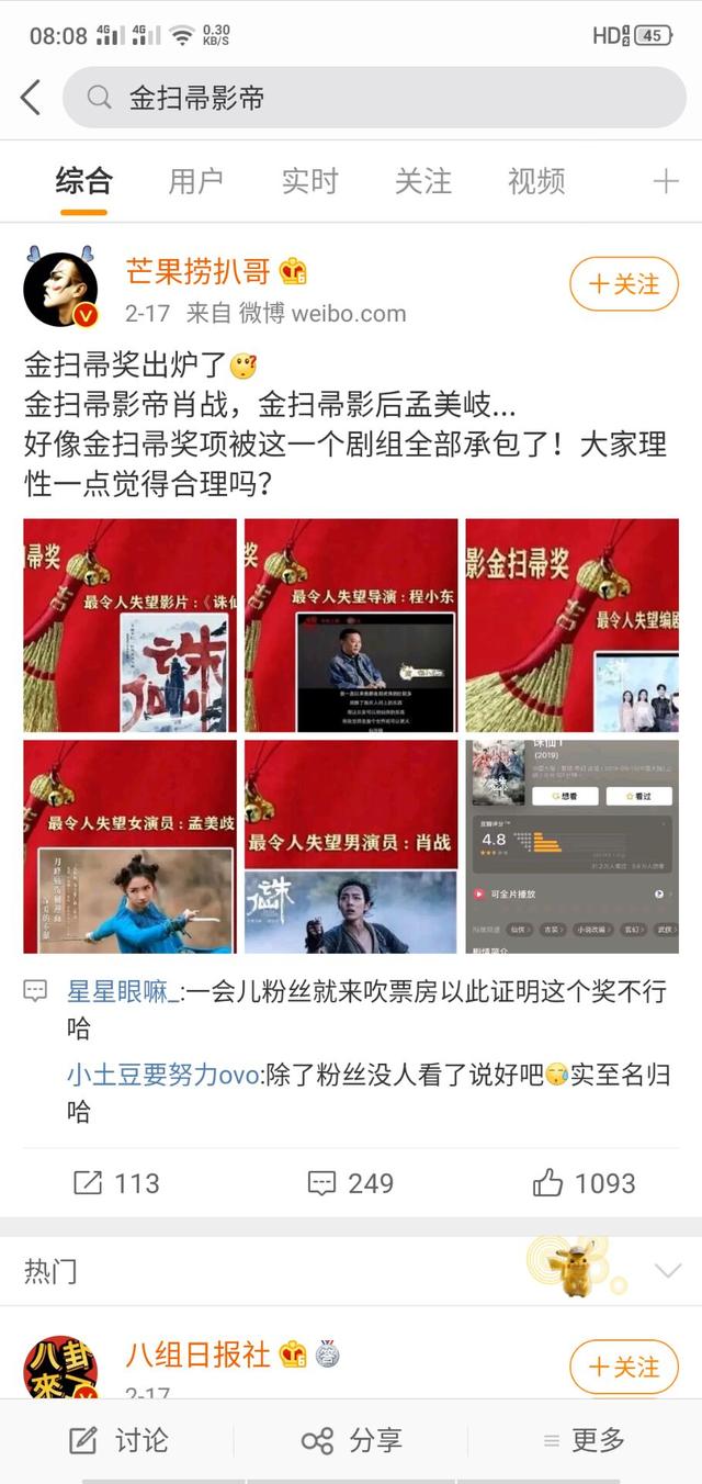 其实肖战这次获得金扫帚奖最令人失望男演员挺冤的,电影《诛仙1》本来就是按照网络大电影的规格来制作的,各种水平本来就达不到院线电影的标准。可是制片方看到肖战凭借着《陈情令》突然爆红,就想“割韭菜”把电影利益最大化,把网大变成了院线电影,还安排在了中秋档。这部电影就好像是班级作品硬是要放在世界舞台展映一样,各方面都达不到标准,所以遭受到了群嘲。