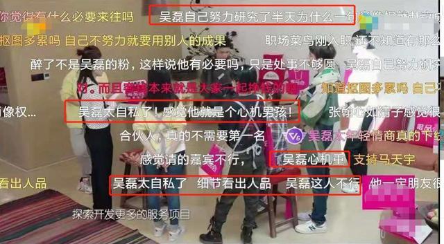 节目第二期吴磊也因为不愿分享自己抠图拍照研究打印机才有的那套完美客房介绍图,被网友吐槽,但也有可能是因为年轻胜负欲太强。