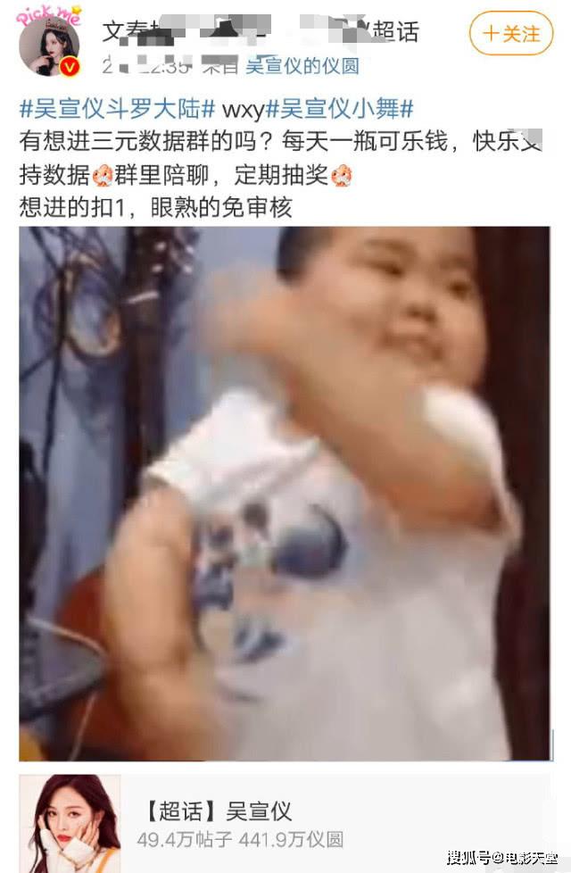 今天有不少网友在议论吴宣仪大粉之前建群的规则,有一位粉丝在吴宣仪的超话当中称建了一个数据群,要想进群的话就先要交三块钱,另外关于这个建群的消息这位粉丝也是发布了不少的微博来宣传和吸粉。