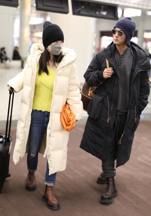 最近两人现身机场,不仅是在节目中秀恩爱,私下里也非常有爱!夫妻俩穿着一黑一白情侣羽绒服,都戴着很可爱的毛线帽。霍思燕秒变小迷妹,一直盯着杜江看,把杜江都给看得害羞了,低着头笑得十分羞涩,像个小男孩儿。