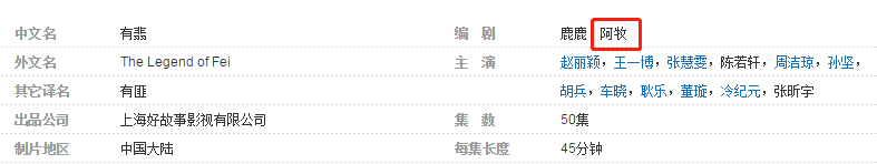 《有翡》的编剧有两位,分别是鹿鹿和阿牧。前者并没有任何编剧作品,貌似是新人,后者其实是原著作者Priest的编剧名,原作者担任剧版编剧,看似是品质保障,实则是安抚粉丝,真正能做主的仍不是编剧。