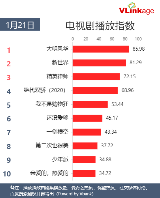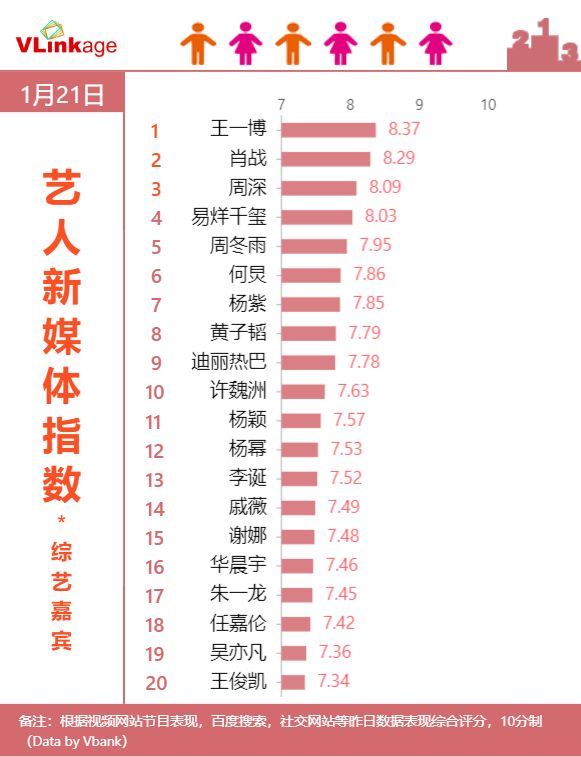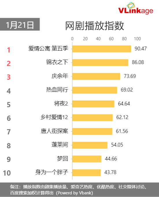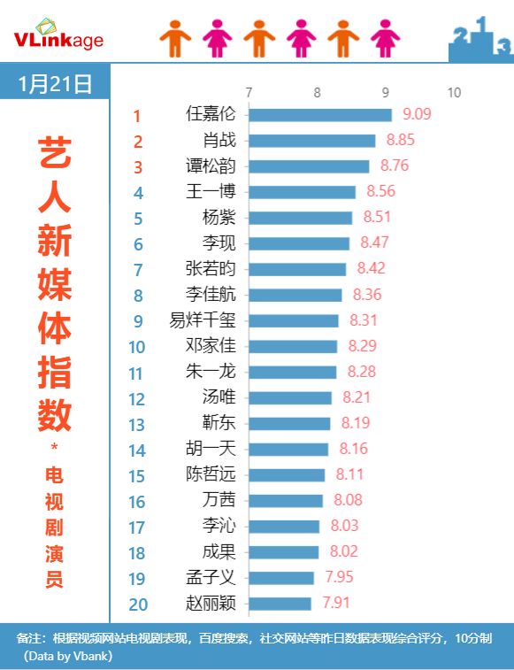 原标题:Vlinkage榜单 | 1月21日网播数据及艺人新媒体