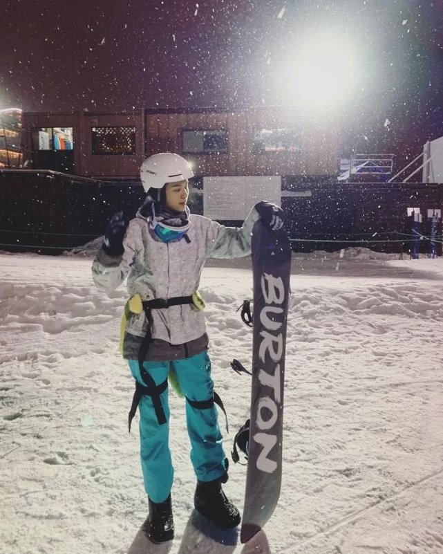 他们在滑雪场玩了一个白天,直到晚上才脱板,在网友要求合照时,二人甜笑回应十分友善。