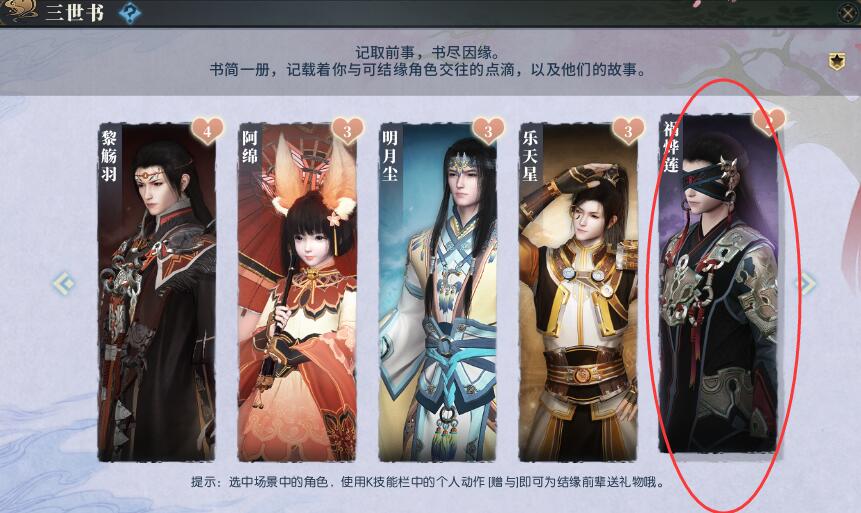 可能在其他游戏中,这个想法难以实现,但是在《古剑奇谭OL》里面却能完美达成,因为这游戏里面有个叫做“三世书”的功能。通过这个功能,小姐姐完全可以提高与祸烨莲的好感度,当达到最高的好感度时,祸烨莲不仅会去掉自己的眼罩,甚至还会跟你主动问好,初次见面的高冷范儿,早就不见踪影。