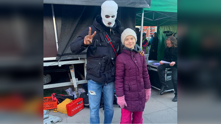 据今日俄罗斯电视台(RT)17日消息,这位与桑伯格合影的蒙面人名叫1.Cu【爱尚影视】z,曾在狱中服刑2年,是一位有争议的瑞典说唱歌手。他在音乐中宣扬毒品、黑帮和枪击等暴力生活方式。他总是戴着面具,以把自己真实身份保密而闻名。