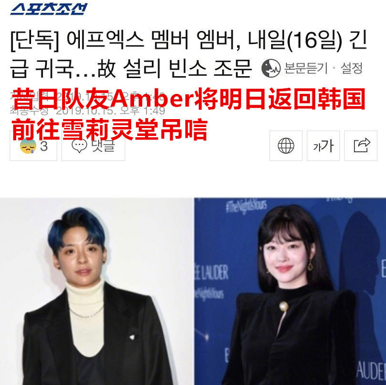而郑秀晶这边,虽然网上并未曝出其具体行程,但其本人就是韩国人,想来也是一定缺席不了送别雪莉最后一程这件事情。