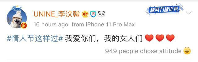 原本“群众基础”就不算太好的李汶翰,在最近一段时间又因为在情人节与自己粉丝们之间的互动,被不少网友发现他与粉丝之间的称呼问题,而引发了网友们的反感。情人节这一天,用“我的女人们”来称呼自己粉丝的李汶翰,看得出来还是很会撩粉,与粉丝互动的。