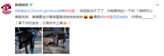 回到陈伟霆屁股抽筋一事上,现在艺人人设确实是越来越搞笑了。不过屁股抽筋一只到另一只,还真只有他陈伟霆能实现了,哈哈。