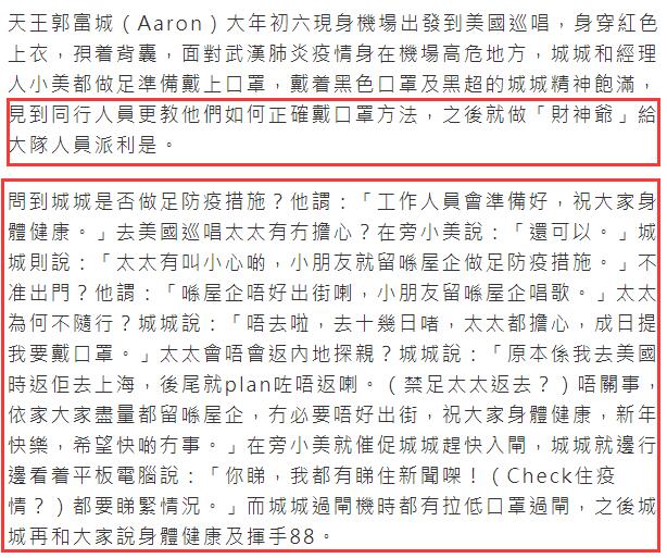 1月30日大年初六,据香港媒体报道,郭富城身穿红色卫衣,口罩遮面现身机场,据悉郭富城此行是准备去美国开巡演,现身机场之后他也是十分随和,不仅给周围人发红包还教人如何正确佩戴口罩。
