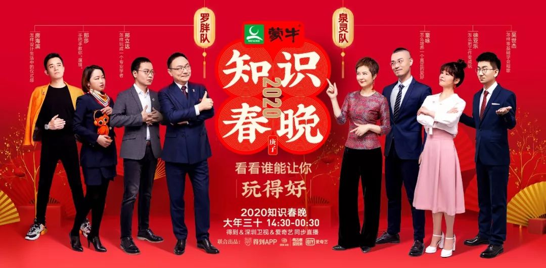 深圳卫视继续主打知识IP,携手得到APP、爱奇艺首度推出2020知识春晚,由罗振宇、张泉灵担纲主持并带队PK,由数十位来自各行各业的讲演者,围绕如何得体地微信拜年、如何应对父母催婚、如何避免“尬聊”等饭桌话题,提供新的视角和解决方案,为全国观众呈现一场有趣有料的知识盛宴。