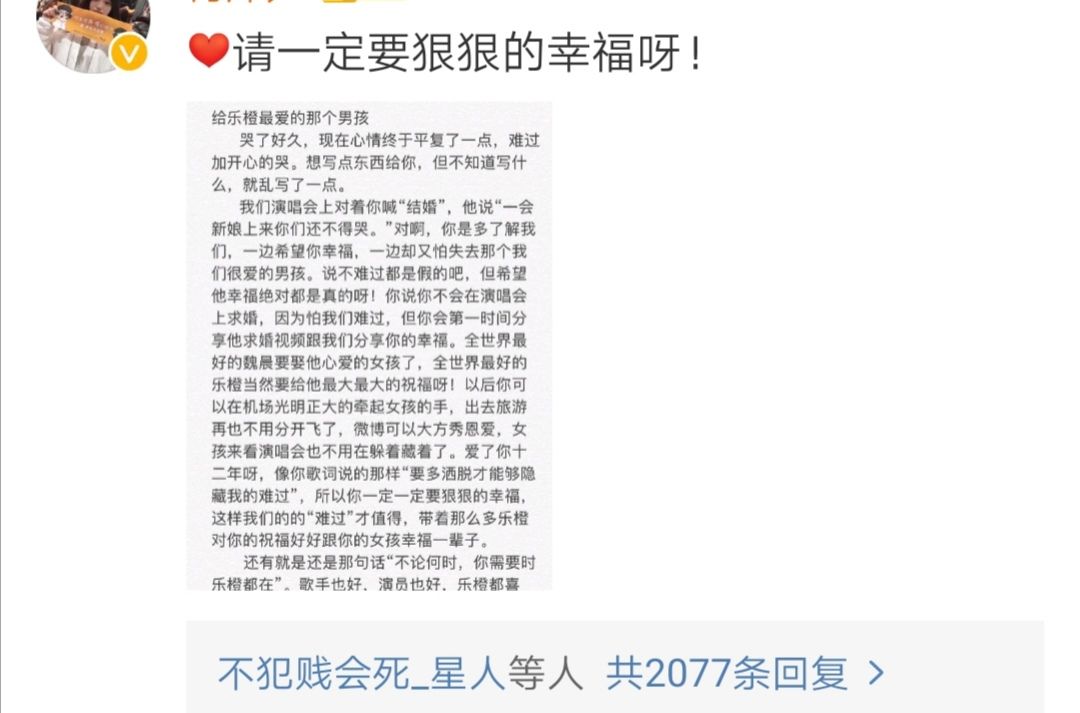 祝福魏晨的同时,也愿天下有情人终成眷属。