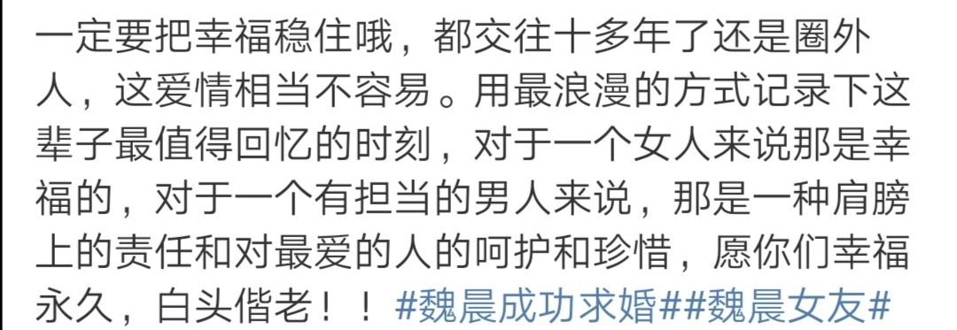所以才有了今天魏晨都求婚成功了,还有很多人不知道他有女朋友的事儿。