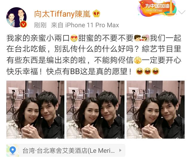 原标题:向太回应向佐郭碧婷吵架,帅锅节目组编的,晒照力证两人甜蜜