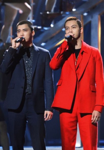 还有一对寸头CP组,陈伟霆和李易峰,两人合唱的《夜空中最亮的星》让晚会现场掀起一阵高潮,从这张照片看两人是不是很像?