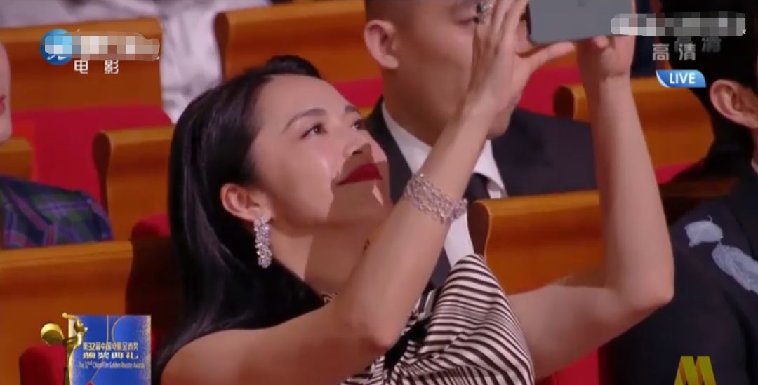但当曹郁上台后,姚晨变成了摄影师,在台下拍摄老公曹郁的领奖过程,并全程花痴笑,嘴巴乐到合不拢。