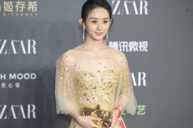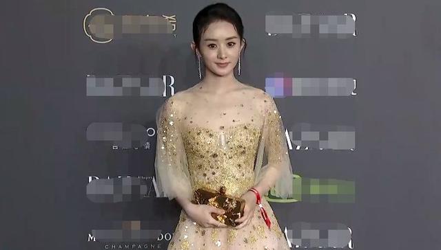 话题中心赵丽颖一身金光闪耀,在闪光灯不停闪烁下折射出流光溢彩。