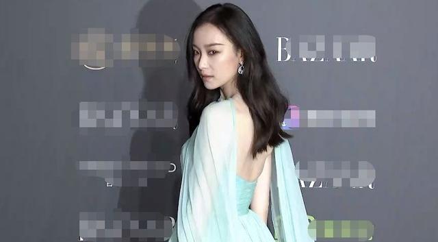虽然妆发和造型有些不搭,裙子也很普通,但是红毯上难得一见的薄荷绿色配上她的冷白皮,让人眼前一亮,整个人都清透了起来,露背加同色丝质披肩的设计还带出性感。