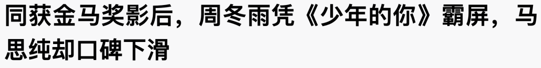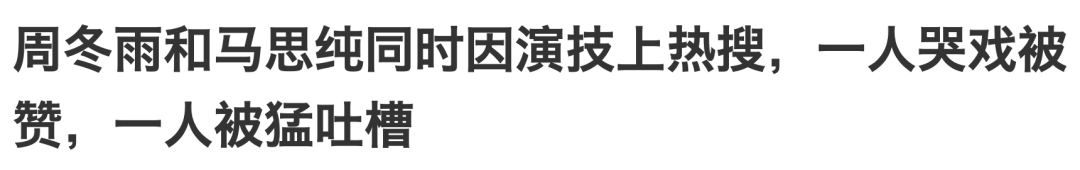 在此之后,周冬雨稳定输出各种高质量表演。但马思纯这边却被嘲七月是她至今最好的角色。甚至有说两人差距越来越大的。