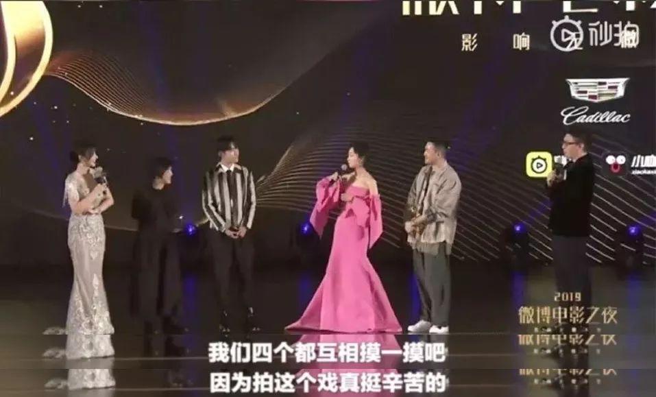 然后气氛到了冰点。周冬雨再次接话,“我们四个都互相摸摸头吧,因为拍这个戏真挺辛苦的”。这话妙就妙在,没让主持人的话落空,也谈了导演想谈的电影,还拒绝炒cp。