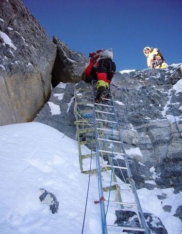 在央视的采访中,夏伯渝先生非常骄傲的说道,第一次通过这个梯子的是1975年登顶的九位中国运动员,在之后的三十多年里面,共有一千三百多个登山者通过这个梯子登上珠峰。