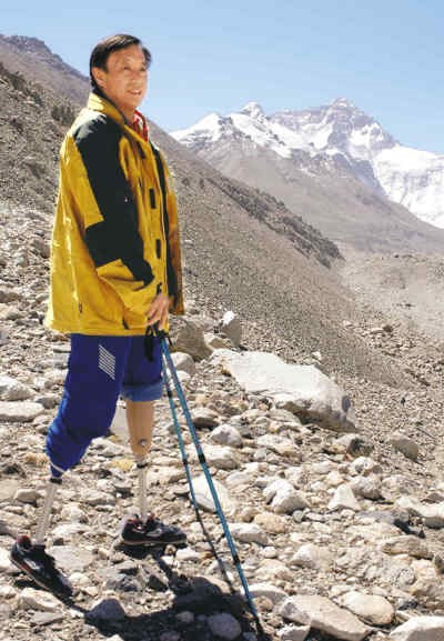 夏伯渝,中国登山家,出生于1949年,与祖国同岁,“中国梯”建设者之一,中国第一位尝试攀登珠峰的残疾人。