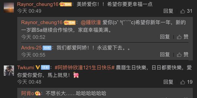 粉丝们纷纷留言送祝福,这么多年过去了,不管阿娇经历了什么,他们始终都不离不弃!