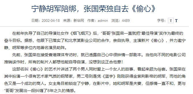 之后张国荣执导的《偷心》,女主角也是属意宁静。可惜最后未能拍成。