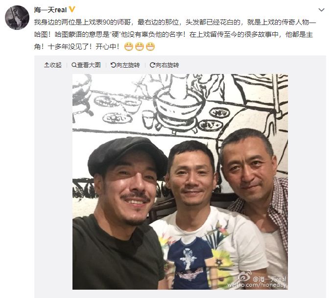 演过《凰权·弈天下》的演员海一天曾晒出和他的合影,说他是上戏的传奇人物。期待有同学说出他的故事。