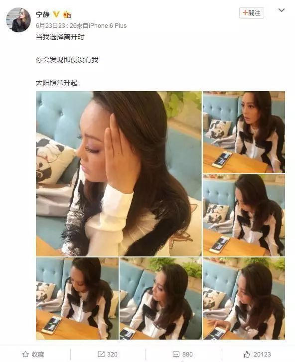 但这段婚姻没有锤,宁静只在传离婚时发了一条语焉不详的微博。