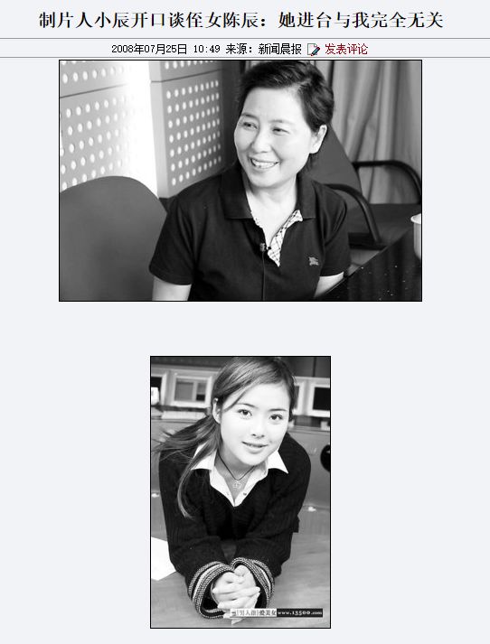 多年后陈辰凭主持《加油好男儿》《我型我秀》等节目有名气了,俩人才公开了亲戚关系