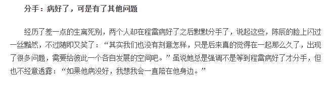 结果病好了,好CP却BE了……陈辰只透露“如果他病没好,我想会一直陪在他身边。”