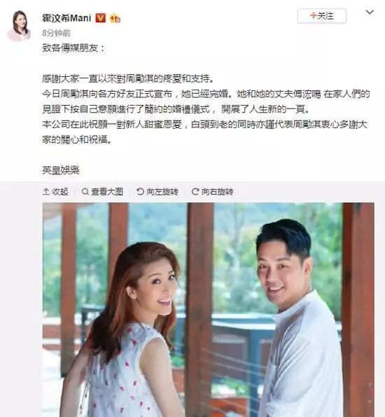 霍汶希官宣的时候,新郎新娘分别叫傅浤鸣和周励淇。