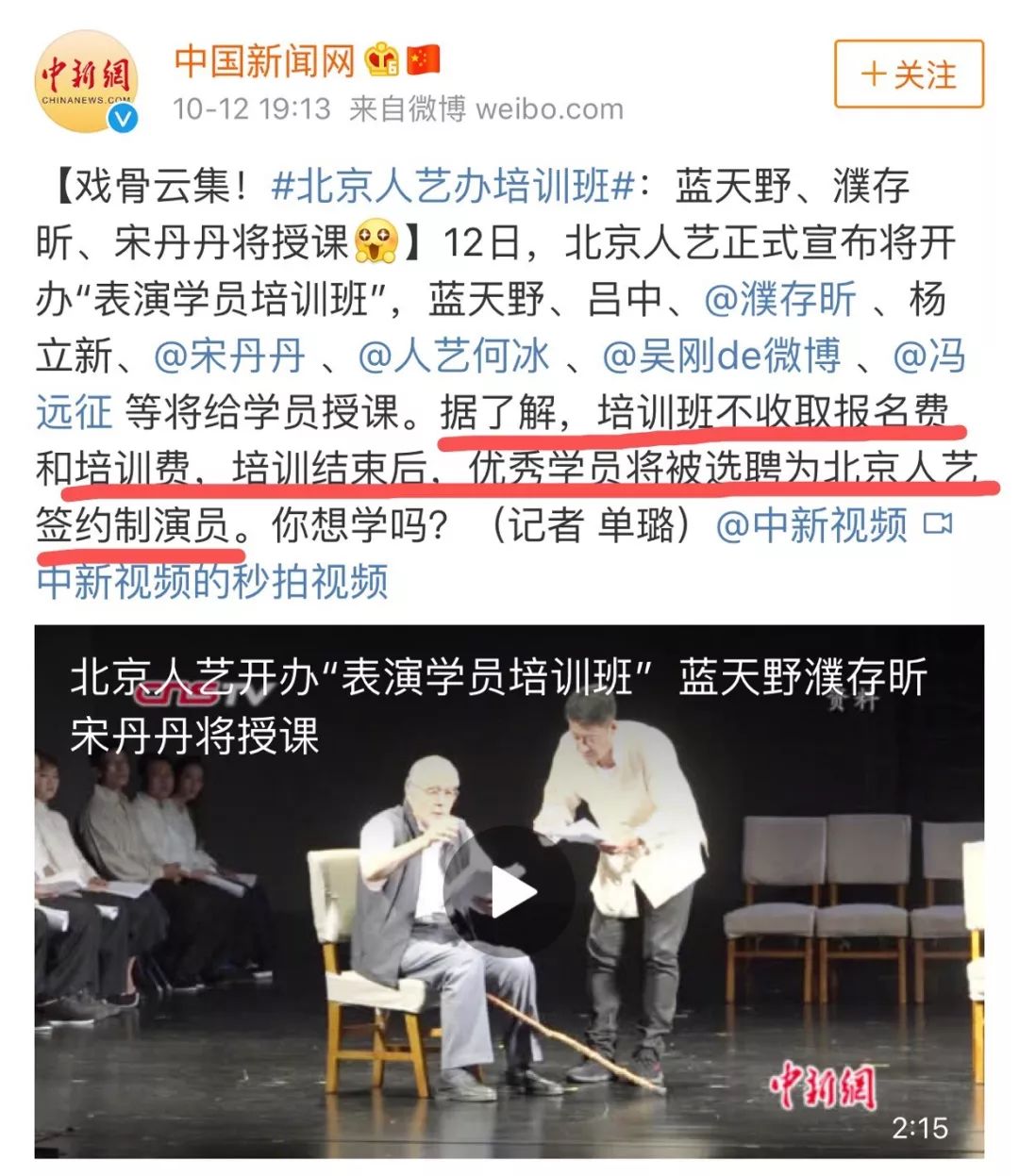 最近,濮存昕还和众多老戏骨共同举办了一个“表演学员培训班”,里面有宋丹丹、杨立新和冯远征等等老戏骨。据悉,该培训班不收取报名费和培训费,培训结束后,优秀学员还会被选聘为北京人艺签约制演员。