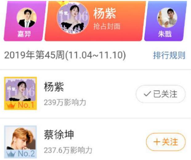 第三个条件是“人气极高”,也就是说要有很多粉丝、要有话题度。这个杨紫也没问题。在各大平台的人气指数榜单中,杨紫都能稳居前3,而且她的微博有近5400万粉丝,每条动态互动数都很高,人气话题度完全符合当选条件。